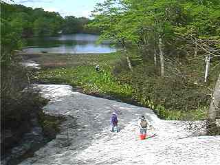帰りは、同じコースを戻るが、中沼でイワナの魚影を確認して喜ぶ。けっこう、大きかった。(美味そうだった。)