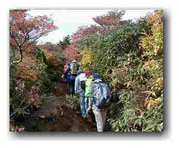 五葉松平からは登山者の隊列もバラバラになり、やや思い通りに歩ける様になって紅葉の中を快適に