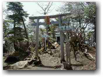 小丸山の展望台からは日光市や今市市の町並みや、遠くに高原山(釈迦ケ岳など)も手に取るように見える。一方、赤薙山方面はガスがしきりに巻き、時々しか見えない。ここからは、背丈の低い笹とツツジの小木の茂る見通しの良い安定した登りが続く。焼石金剛を過ぎるとやや傾斜もきつくなり、ほどなくコメツガの大木の林にはいる。登山道にはツガの根が張りだし、登るペースを乱し滑りやすくなっている。赤薙直下には残雪もありかなり歩行が乱れて、視界の聞かないまま山頂(2010m)の祠に着く。