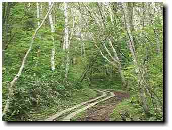 ![]() ミズナラ林の登山道 |