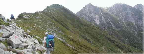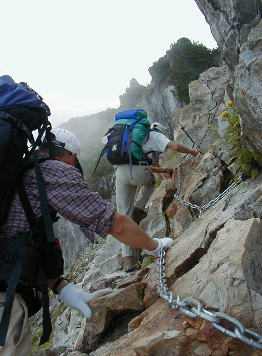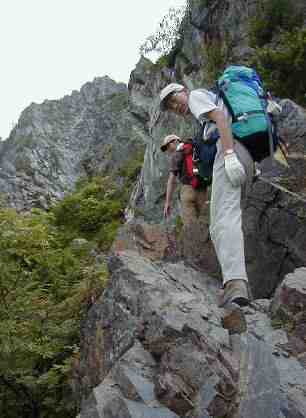 ![]() U峰北付近のクサリ場 |