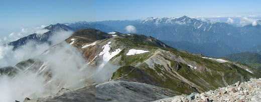 ![]() 白馬鑓より白馬岳・杓子岳 |