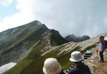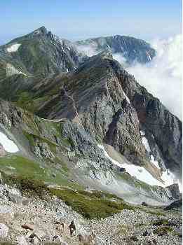 ![]() 鹿島槍方面遠望、中央右ピークは剣岳 |