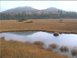 尾瀬ヶ原を思わせる広い湿原は、草紅葉も終わりつつあった。夏の様子を想像しながら、ゆっくり高原の湿原を散策する。 少し木道の幅が狭いのが気になり、休憩所も少ない。シーズン最盛期には、人がはみ出しそうだ。 | ![]() 根名草山−白根山遠望 |