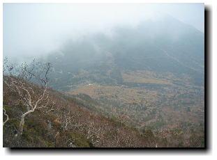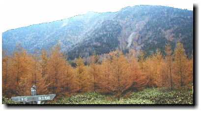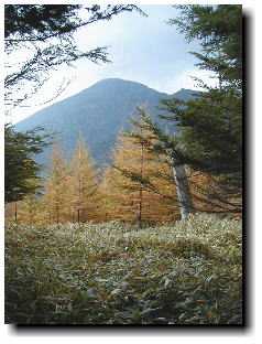 ![]() コメツガ林から男体山 |