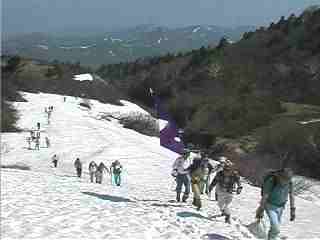かで見たことのある人だった。何と、吉家氏ではないか。翌日の山開き山行の下見に、山頂まで行って来たらしい。我々が来るのを待っていたようだ。