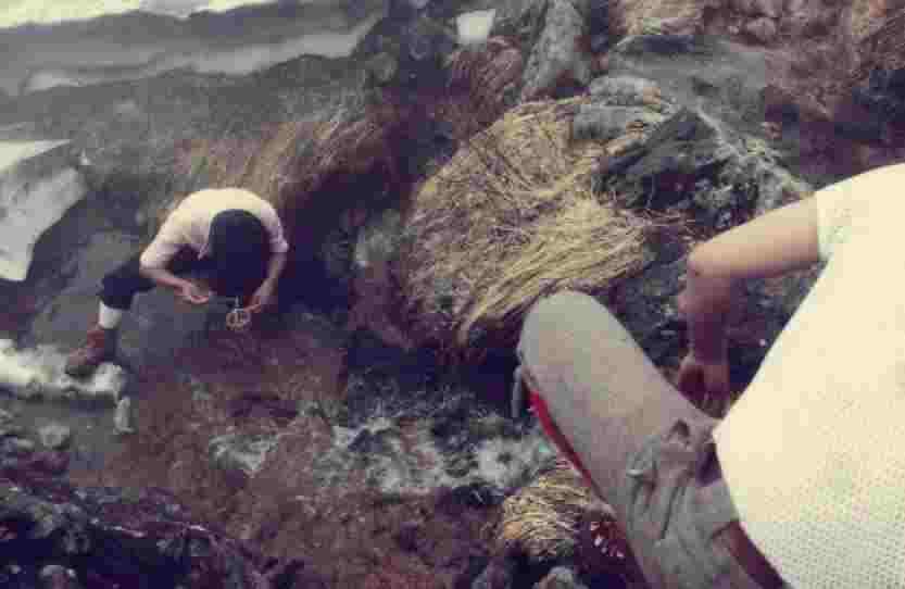 | 20代のころに、須川岳に宮城県側から登った時の話です。 定時に集合したのですが、聞くと昼食を誰も持ってきませんでした。仕方なく、途中で買い出しする事にしたのですが、当時はコンビニなどと言う店はありません。途中の集落にある店を見つけて入ったのまでは良いのですが、パンは古いし、腹持ちが悪いインスタントラーメンも美味そうなのがない、などとためらっていたら、ソーメンの束を見つけ、たまには変わったのもいいなと合意して買いだした。 いつものごとく、樹林帯をワイワイ、ガャガャ登り樹林がすぎる頃には腹も減った。水場はまだか?。などと無駄口をはきながらドゾウ沢に着いた。 なぜか装備だけはそろっている。早速、調理にかかり食べようとするが、「ソーメンだど、ひやさねぇば」の声に全員上部に雪渓の詰まった沢を見つめる。「これゃしゃけどー」と沢の泥落としにかかる。 しばらくして、滝流しソーメの始まりである。一人がゆでたばかりのソーメンを上流から流す。「えぐどー」、二人が下流でつゆ入りのカップを持ちかまえる。「いげるどー、しゃつこくてうめー」と歓声を上げながらすくい上げている。ただ欠点が一つあった。沢を掃除したものの、すこし砂が入りジャリッとした。 全員、須川岳を満喫したのは勿論だが、滝流しソーメンも満喫?して帰った。 尚、本当の滝流しは、湧水のきれいな所で、7−8mの竹の節を取り除いたトイを利用して流す。 |