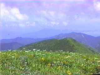 | 1994.7 参加者 佐藤、阿部 国道107号の川尻より、沢内村を約23km北上すると高下集落に入ります。そこを左折し、高下川沿いに林道を30分も走ると登山口があります。私たちは、ここで一泊し次の朝5:00出発する。 約30分の登りがつづき、大きなブナ林に入ると赤沢コースの分岐に着き、傾斜も緩くなる。高下岳のなだらかな尾根である。20分程進むと、高下岳へのコースの分岐があり、やがて和賀川源流部への下りに入る。せっかく高度を稼いだのだが、同じぐらい下り、がっかりする。 和賀川は水量も多く、渡る場所をしっかり選ばないと、キャッパリをくらう。自信のない人は、靴を脱いで渡った方が早いかもしれない。ここで朝食を取る。 7:00いよいよ、きつい登りにかかる。ブナ林から灌木に変わる頃、どこからかいい香りがする。登りにかかり2回目の休憩の時に、ザックの底を見ると濡れていたので中を見ると、なんと、やっとの思いでここまであげたビールが泡を吹いていた。ガックリ。仕方無しに、ここで残っていた泡をすすり、気付け代わりにする。 苔平に着いたのは、約1時間半もしてからだった。チョイトビールがききすぎた。苔平はかなり広く、展望も良く雲海の彼方には、焼石連峰などが見える。ここから山頂まで、お花畑もつづき快適に歩くが、まだ本峰の登りが20分ほど残っている。 最後の力を振り絞って登りきると、いい、なかなかいい。360度の大パノラマが開けた。岩手山、秋駒、田沢湖も霞んで見える。大曲方面や沢内村もすぐそこにみえた。ただ、吉家氏が登っている早地峰山だけは、スッポリ雲に覆われ見えなかった。なんでだ?と二人で苦笑いする。 天気も最高で、登山者もたくさんいて、トンボの大群も舞っている。のどかに、1時間ほど景観を楽しむ。ビールは無くても最高の一日だった。 参考 秋田側の薬師岳のコースの方が楽そうです。 今年は、岩手山が入山禁止になり、和賀岳登山に人気が集中したそうだ。 キャツパリ・・・・あやまって、足を靴ごと水に入れること。 |