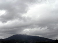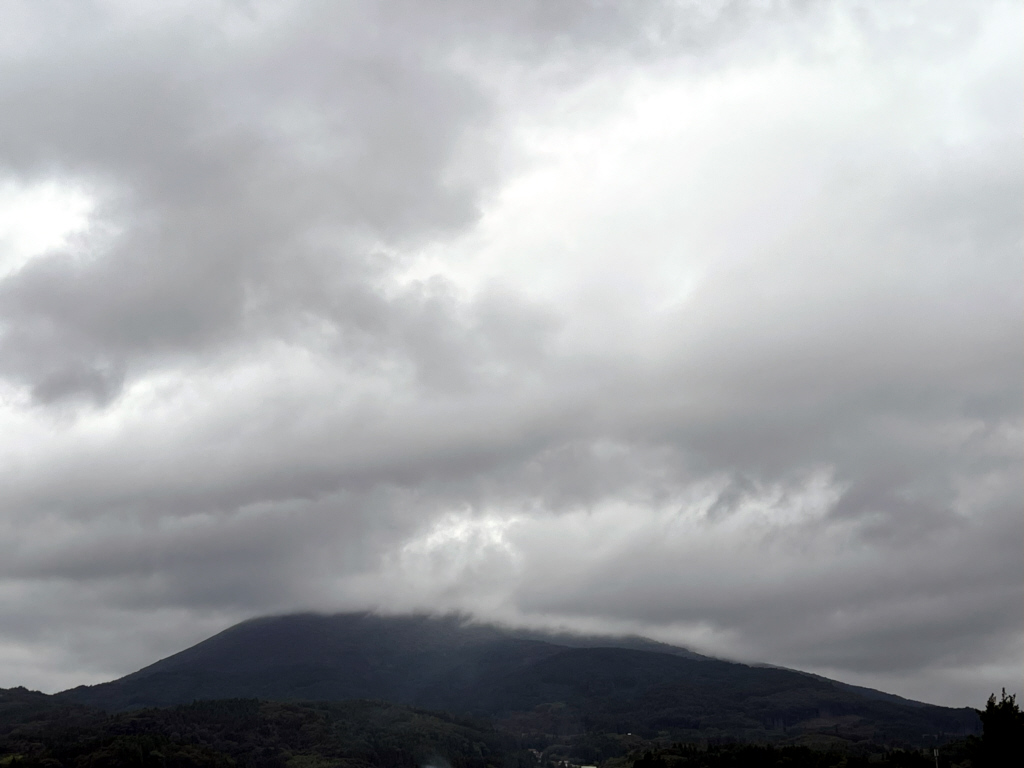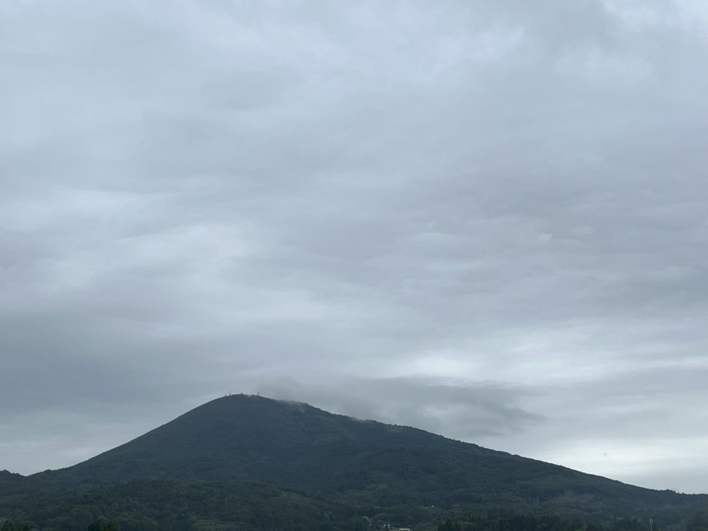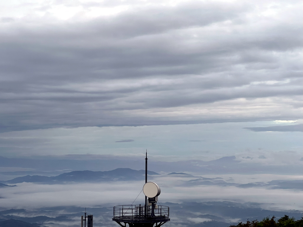 西にある低気圧の北側で帯状の雲が出現し、室根山上空を横切っています。