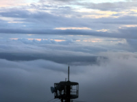 日の出、月没の頃、明るくなっても、雲に囲まれた状態は変わらず。