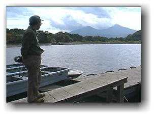 時間が十分あるため、下山は牛の背をまわる。鉄山が目の前に迫り、船明神山の肩からは磐梯山の頭も見える。強風の中、進むにつれ檜原湖や秋元湖もハッキリ見えた。15分ほどで沼の平の雄大な火口跡が現れ、数年前の事故を思い出す。