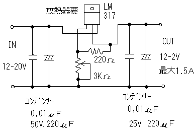 尚、IN側に逆接防止に3A位のダイオードをシリースに入れると良いでしょう。