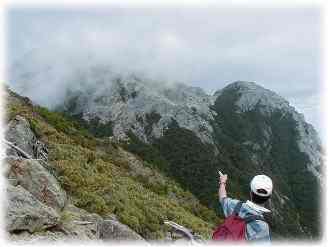 ![]() 直登コースの岩場 |