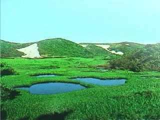 大小の地塘が点在しミズバショウやヒツジグサなどが植生し、まるで尾瀬を思わせる。小さい地塘だからと油断してはならず、謝って足などを入れないこと。かなり深く、足が底に着かない所もある。勿論、泥炭地なのであたりかまわず踏み荒らしてはいけない。