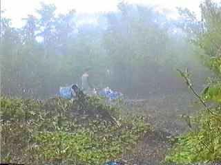 1995.6.17 参加者 吉家、阿部 この日は国道108号を、鬼首側から赤倉橋まで車で入る。今は108号にトンネルが完成して、少し道が変わったので地元に問い合わした方がよいでしょう。 赤倉橋の付け根を下り、登山開始するが、すぐ下には立派な車道が通りっていた。ただし、木の橋は重量制限は無いものの、少し弱々しく思える。車道を30分程行くと、登山口に道標が立ち案内してくれる。しばし、赤倉沢沿いに登山道が緩やかにつづき、徒渉点に着く。丸木橋が、なつかしく迎えてくれる。ここまで小一時間かかった。 いよいよきつい登りにかかり、30分程で檜林に入る。檜とブナが入り交じり、なにか変だが夫婦杉も怪奇な姿をしている。地元の山岳会が、高度差の案内板を設置してあり、体調と相談しながら登れ助かる。約徒渉点から、2時間で尾根に出て、大休止を取る。 ここから、高松岳に向け縦走路がある。この分岐からは、灌木が生い茂り展望はきかない。分岐から、緩やかな登りで天気が良いと景色もいいはずだが、霧雨で何も見えない。40分位で山頂避難小屋に着く。 すこし東側に行くと、池糖の散らばる草原があり素晴らしい展望が望めるはずだが、20m位しか見通せず残念だった。小屋に入り、昼食と無線を楽しみあせを乾かす。下山は、約3時間かけた。 参考 108号新道出口?には、秋の宮温泉郷があるので是非つかりたい。 地元の山岳会が、登山証明書を出すそうなので案内板を確認して、記念に申し込むのも良いでしょう。 ![]() 高松岳から見る虎毛山 | |