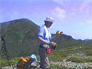 | 1994.7 参加者 佐藤、阿部 国道107号の川尻より、沢内村を約23km北上すると高下集落に入ります。そこを左折し、高下川沿いに林道を30分も走ると登山口があります。私たちは、ここで一泊し次の朝5:00出発する。 約30分の登りがつづき、大きなブナ林に入ると赤沢コースの分岐に着き、傾斜も緩くなる。高下岳のなだらかな尾根である。20分程進むと、高下岳へのコースの分岐があり、やがて和賀川源流部への下りに入る。せっかく高度を稼いだのだが、同じぐらい下り、がっかりする。 和賀川は水量も多く、渡る場所をしっかり選ばないと、キャッパリをくらう。自信のない人は、靴を脱いで渡った方が早いかもしれない。ここで朝食を取る。 7:00いよいよ、きつい登りにかかる。ブナ林から灌木に変わる頃、どこからかいい香りがする。登りにかかり2回目の休憩の時に、ザックの底を見ると濡れていたので中を見ると、なんと、やっとの思いでここまであげたビールが泡を吹いていた。ガックリ。仕方無しに、ここで残っていた泡をすすり、気付け代わりにする。 苔平に着いたのは、約1時間半もしてからだった。チョイトビールがききすぎた。苔平はかなり広く、展望も良く雲海の彼方には、焼石連峰などが見える。ここから山頂まで、お花畑もつづき快適に歩くが、まだ本峰の登りが20分ほど残っている。 最後の力を振り絞って登りきると、いい、なかなかいい。360度の大パノラマが開けた。岩手山、秋駒、田沢湖も霞んで見える。大曲方面や沢内村もすぐそこにみえた。ただ、吉家氏が登っている早地峰山だけは、スッポリ雲に覆われ見えなかった。なんでだ?と二人で苦笑いする。 天気も最高で、登山者もたくさんいて、トンボの大群も舞っている。のどかに、1時間ほど景観を楽しむ。ビールは無くても最高の一日だった。 参考 秋田側の薬師岳のコースの方が楽そうです。 今年は、岩手山が入山禁止になり、和賀岳登山に人気が集中したそうだ。 キャツパリ・・・・あやまって、足を靴ごと水に入れること。 |