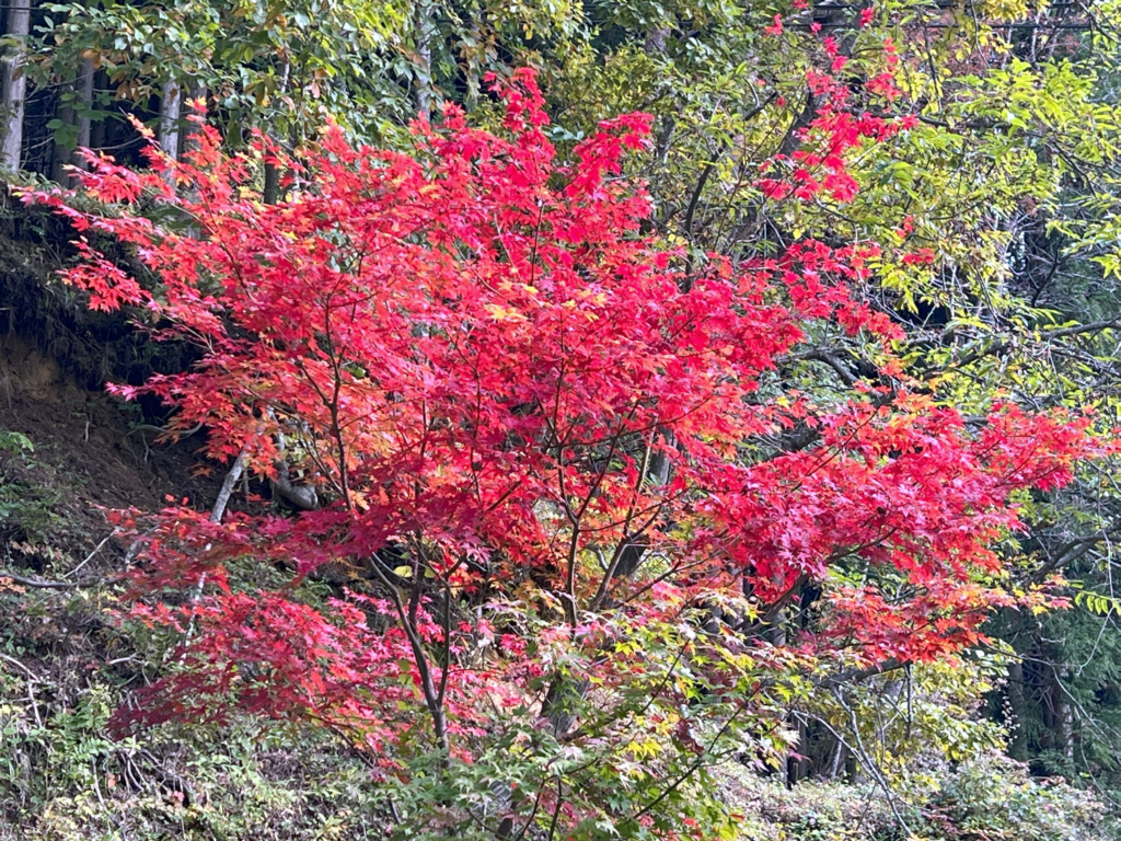 室根山でこれほど鮮やかな赤の紅葉は初めて目にします。